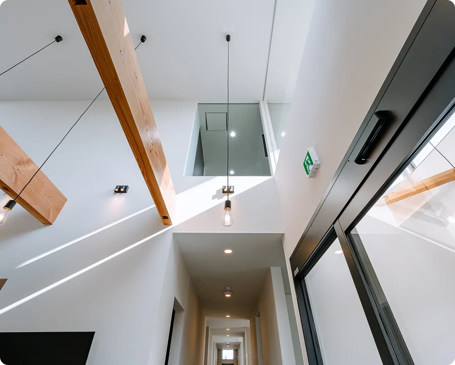 自社の設計はもちろん設計事務所と連携することで、さまざまなニーズに対応した柔軟な設計を実現。地域や用途に最適な建築を、幅広くご提案します。